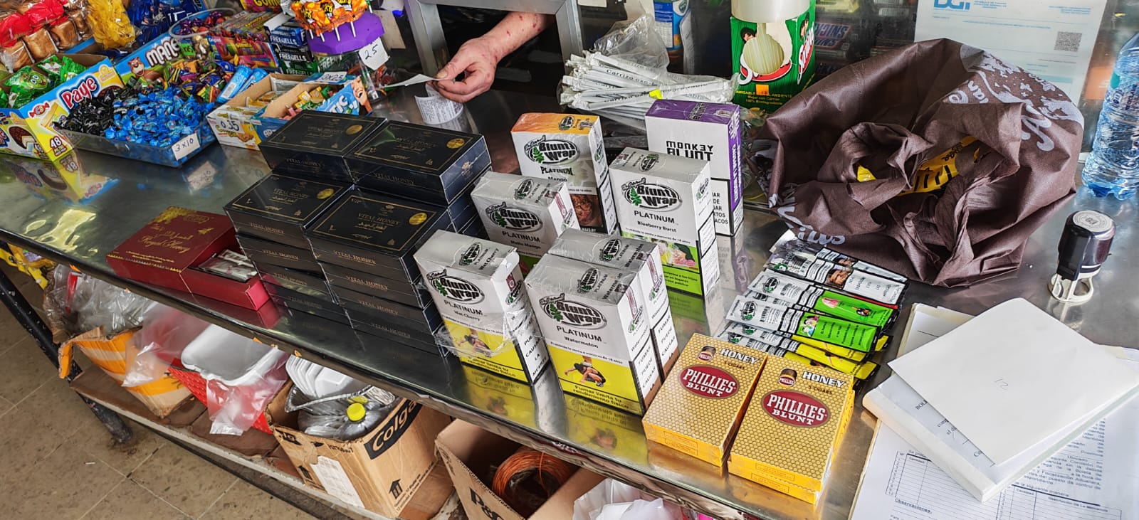 Al revisar la carga, observaron varias cajas que contenían desodorantes, preservativos y baterías desechables, todos sin la documentación requerida para su transporte y comercialización. La mercancía, además, levantó señales de posible fraude marcario, debido a las marcas impresas y la falta de respaldo legal.